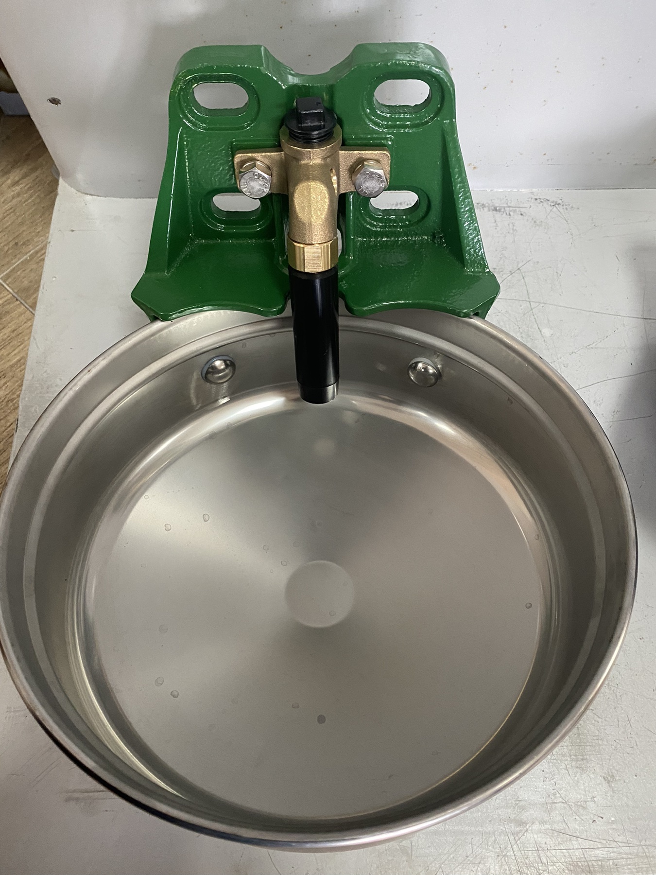 Индивидуальная автоматическая поилка для КРС с носовым клапаном, привязное содержание на два скотоместа. Объем чаши — 5л. Нержавеющая сталь. Подключение воды — 1/2″. Комплектуется дополнительным ремкомплектом клапана.