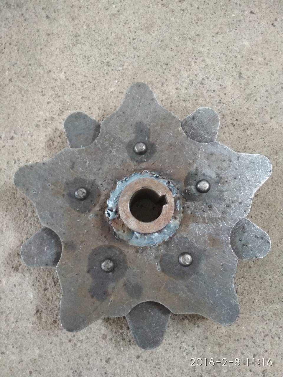 Звездочка ведущая №4, устанавливается на наклонный редуктор, клепаная, с центральным зубом.